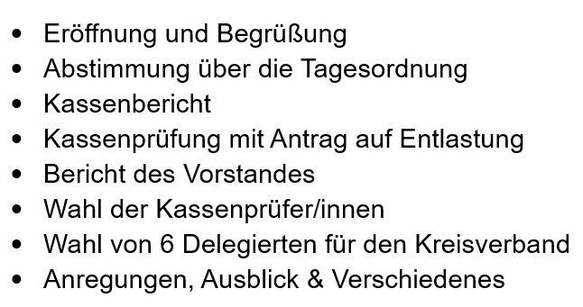 Unsere Jahreshauptversammlung findet am 16.4.2026 um 20 Uhr im Glöckelchen statt |
